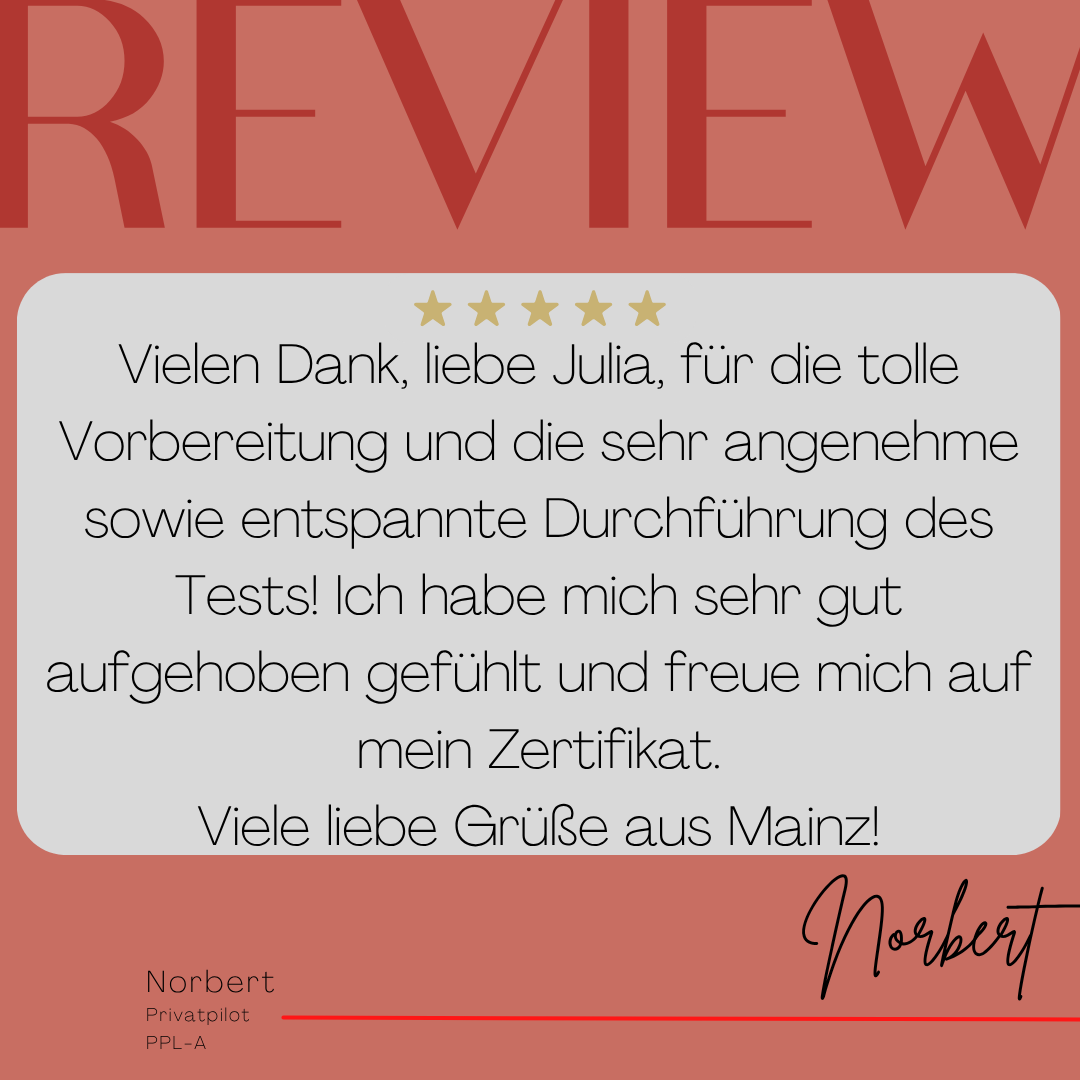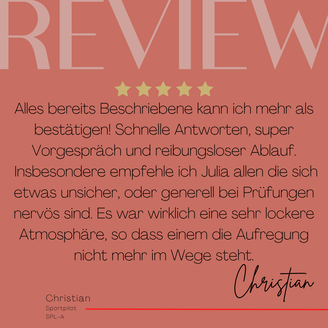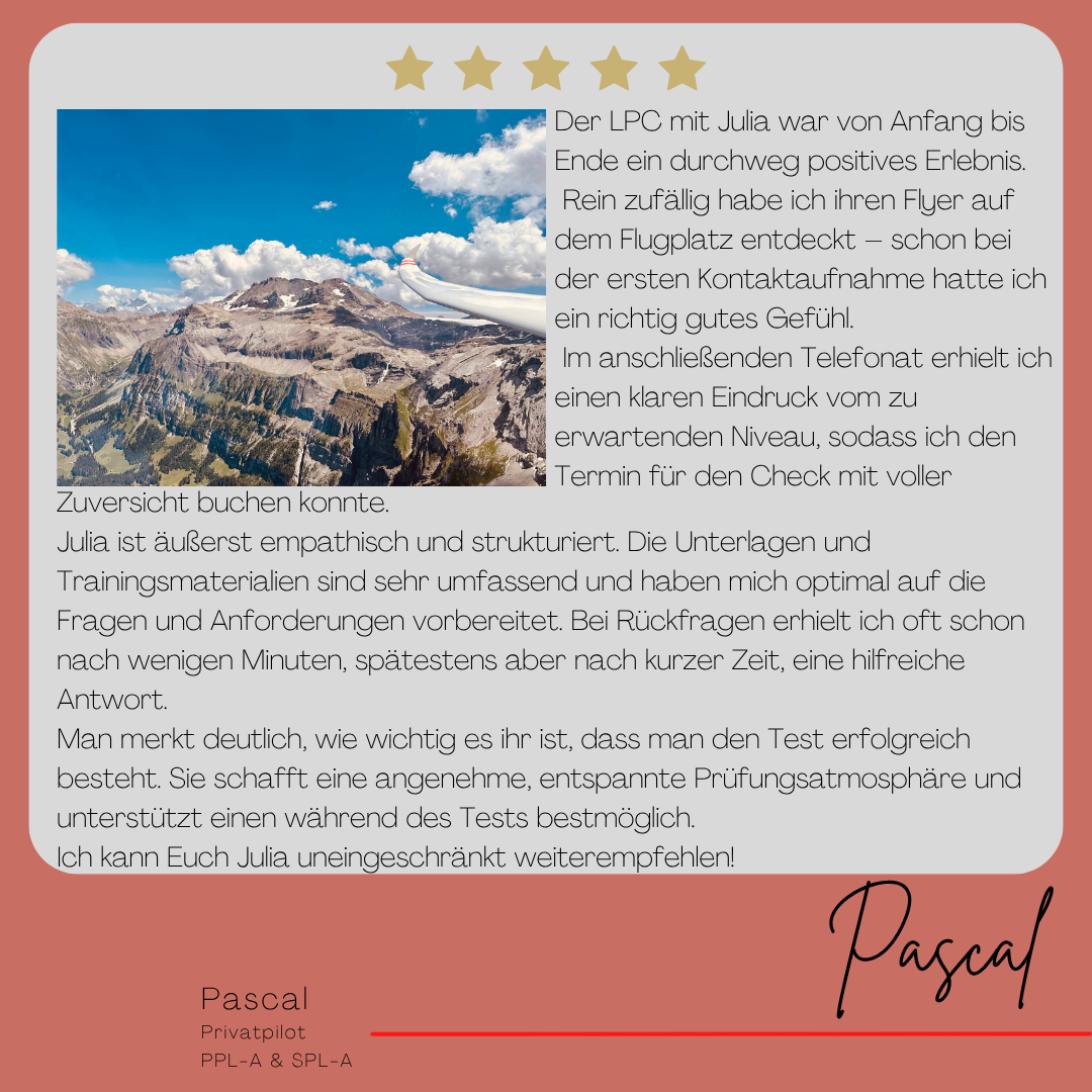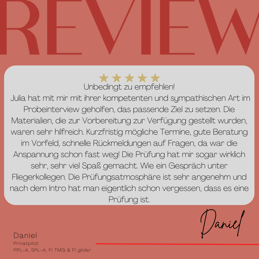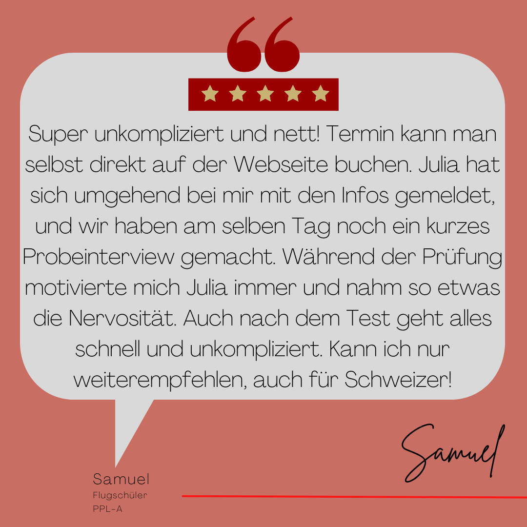 Mein Name ist Julia Engster-Juhas. Ich spreche fließend Englisch auf Expertenniveau (Level 6). Nach meinem Lehramtsstudium begann ich mit dem Flugschein. Nachdem ich diesen absolviert hatte, vertiefte ich meine Kenntnisse in der Flugtheorie und wurde Theorielehrerin.
