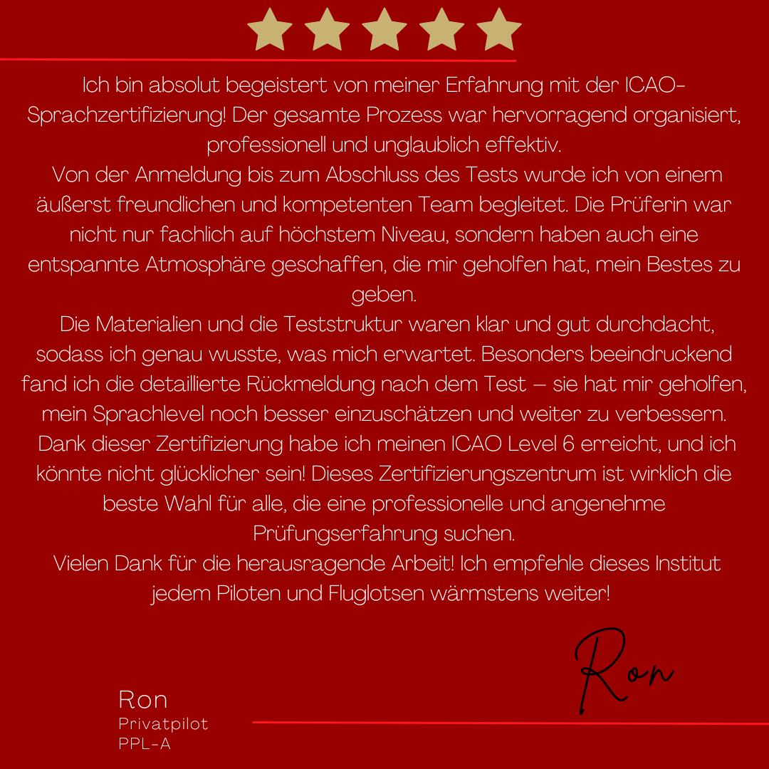 - Zertifizierte Sprachprüfungen in Deutsch und Englisch gemäß ICAO Doc 9835